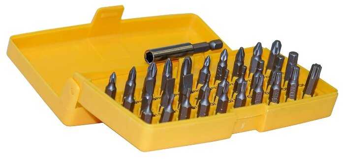 - + Достаточно удобный и разнообразный набор, и машину обслужить и дома есть где применить. Крестовая бита не слизалась, когда саморезы вкручивал.