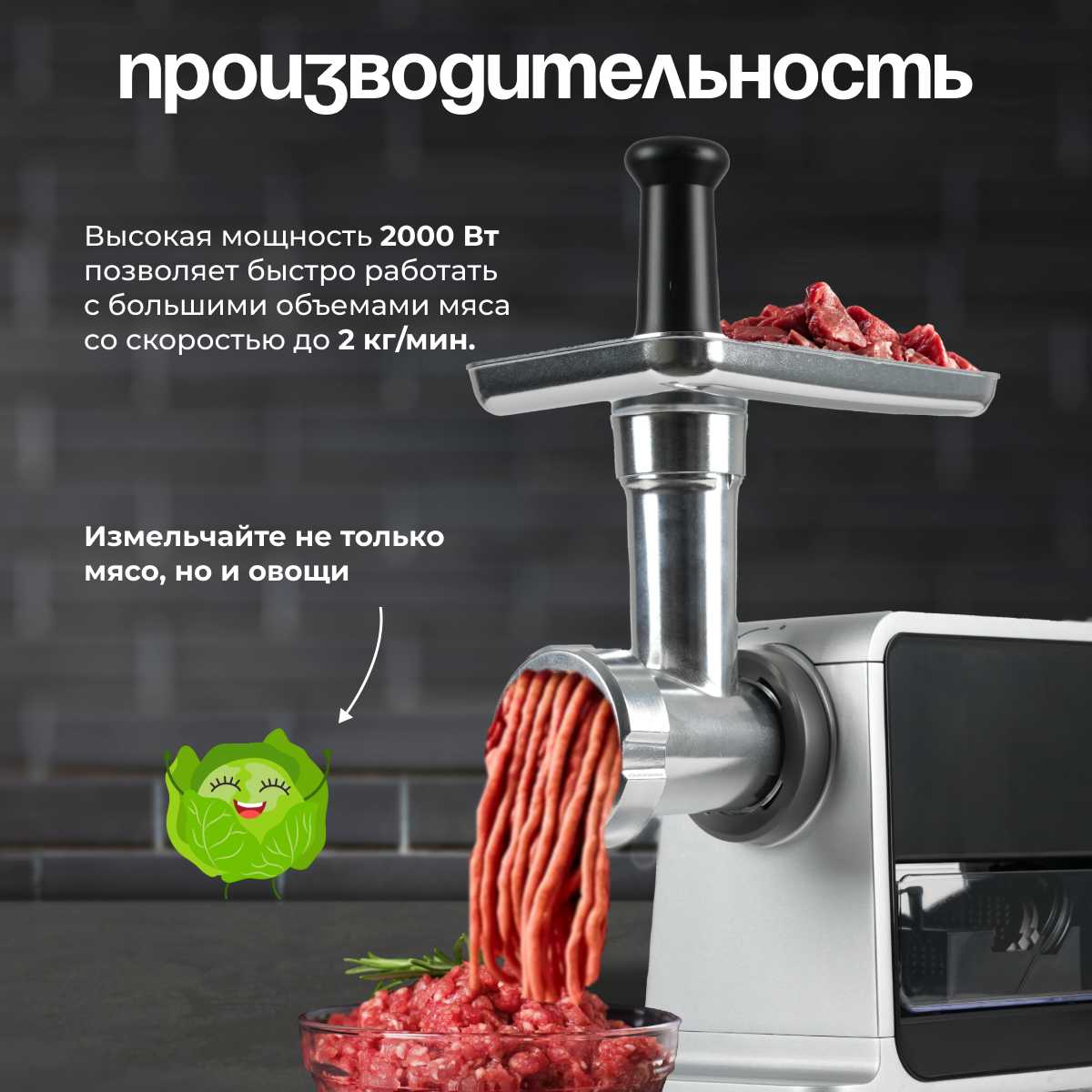 - Насадки: диск для фарша