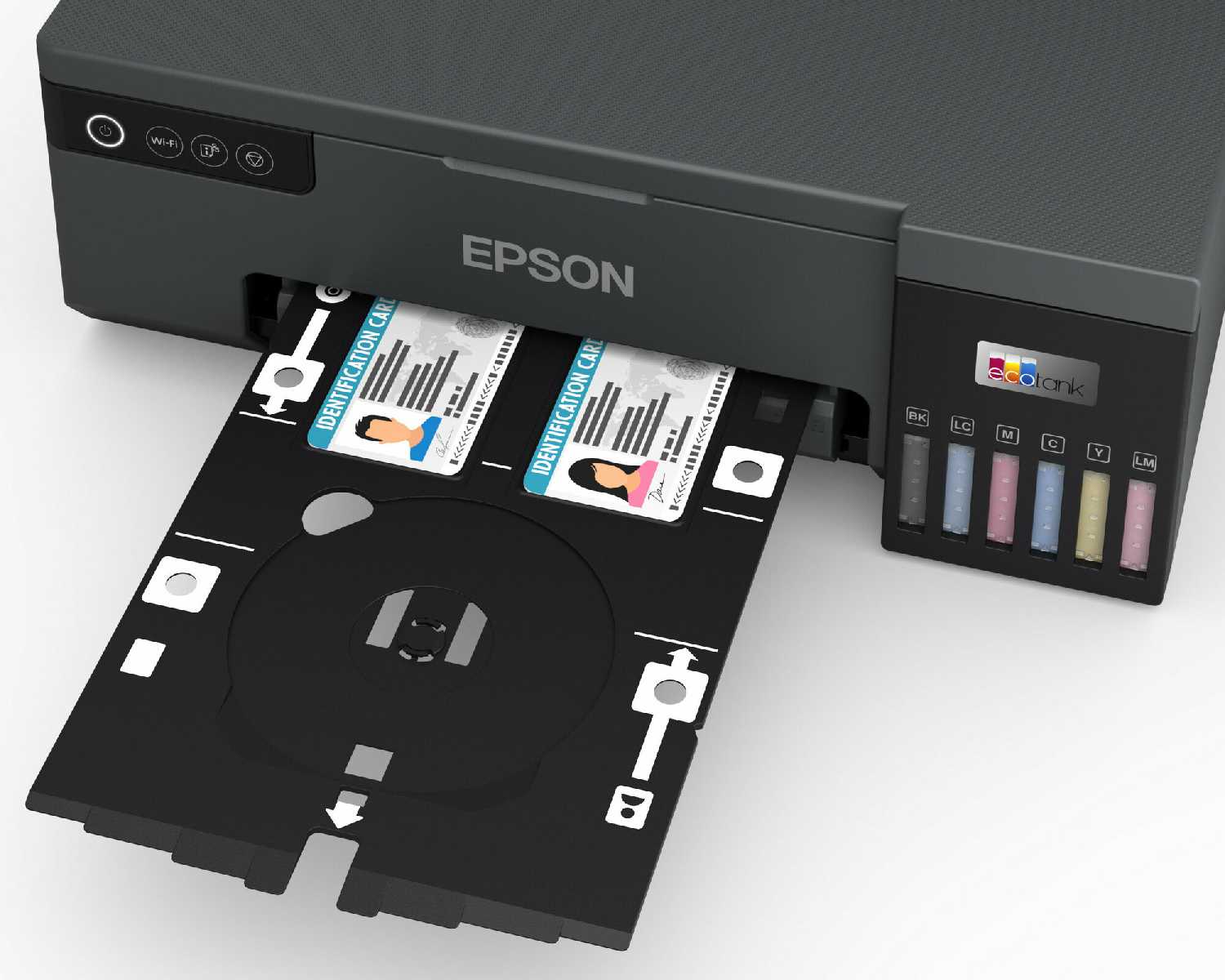 Устройство стабильно работает с картоном до 300 г/м² (матовая фотобумага, акварельная бумага), но испытывает трудности с мелованными покрытиями. Штатно поддерживается печать на PVC-картах и CD/DVD благодаря фирменному ПО, причем выравнивание макетов улучшено по сравнению с L805. Однако при печати на сублимационной бумаге могут потребоваться демпферы, отсутствующие в базовой комплектации. -
