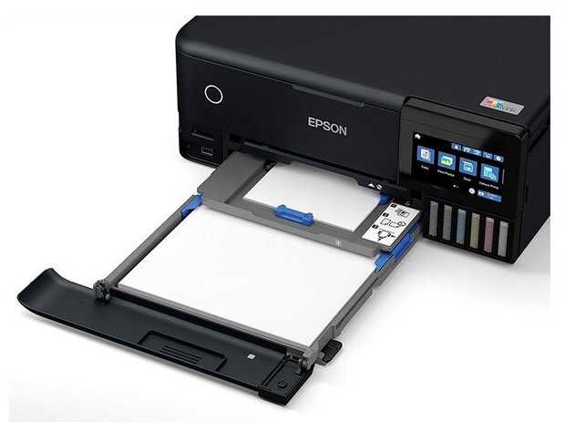 - + отдельный лоток для фотобумаги, что очень круто, отличное качество печати, печатает без полей, wifi, СНПЧ, выглядит стильно