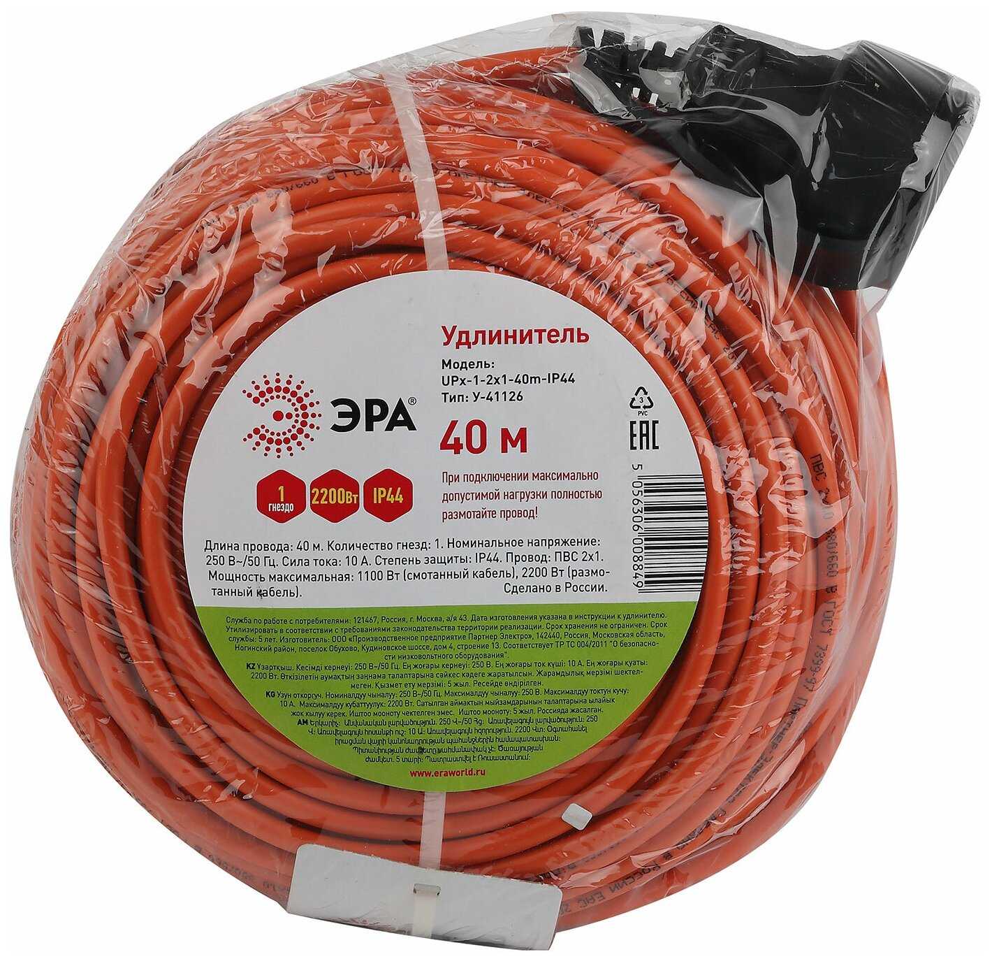 | Дополнительная информация : | Удлинитель ЭРА 1 гнездо ПВС б/з IP44 2х1мм 20м оранжевый |