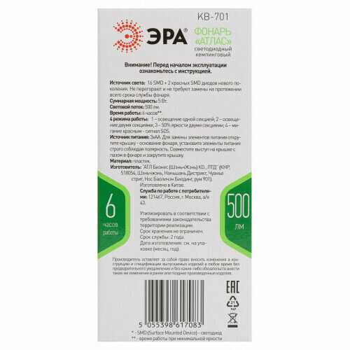 Характеристи Эра Фонарь кемпинговый (KB-701)