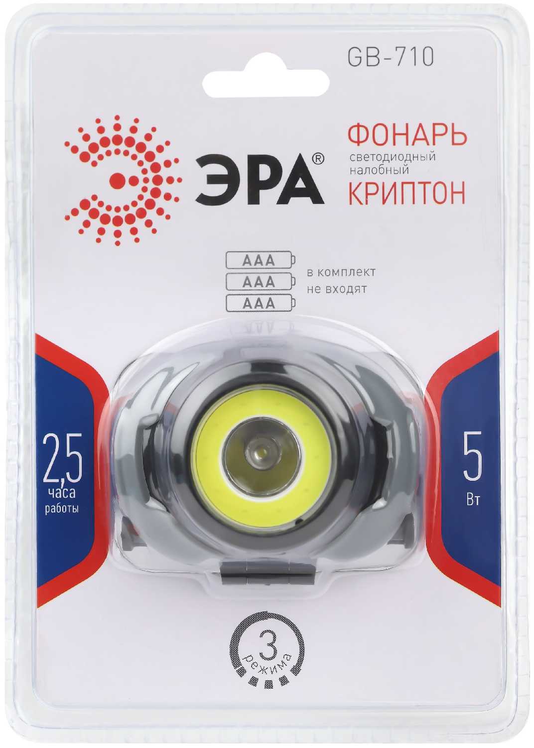 | Дополнительная информация : | Мощность Вт: 5 Вт, тип батарей: AAA, подробная комплектация: Налобный фонарь - 1 шт., количество батарей: 3, количество режимов работы: 3 |