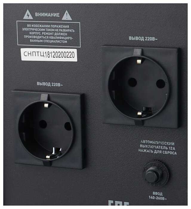 - + В наличии две розетки на выход, можно подключить два прибора по номинальной мощности.
