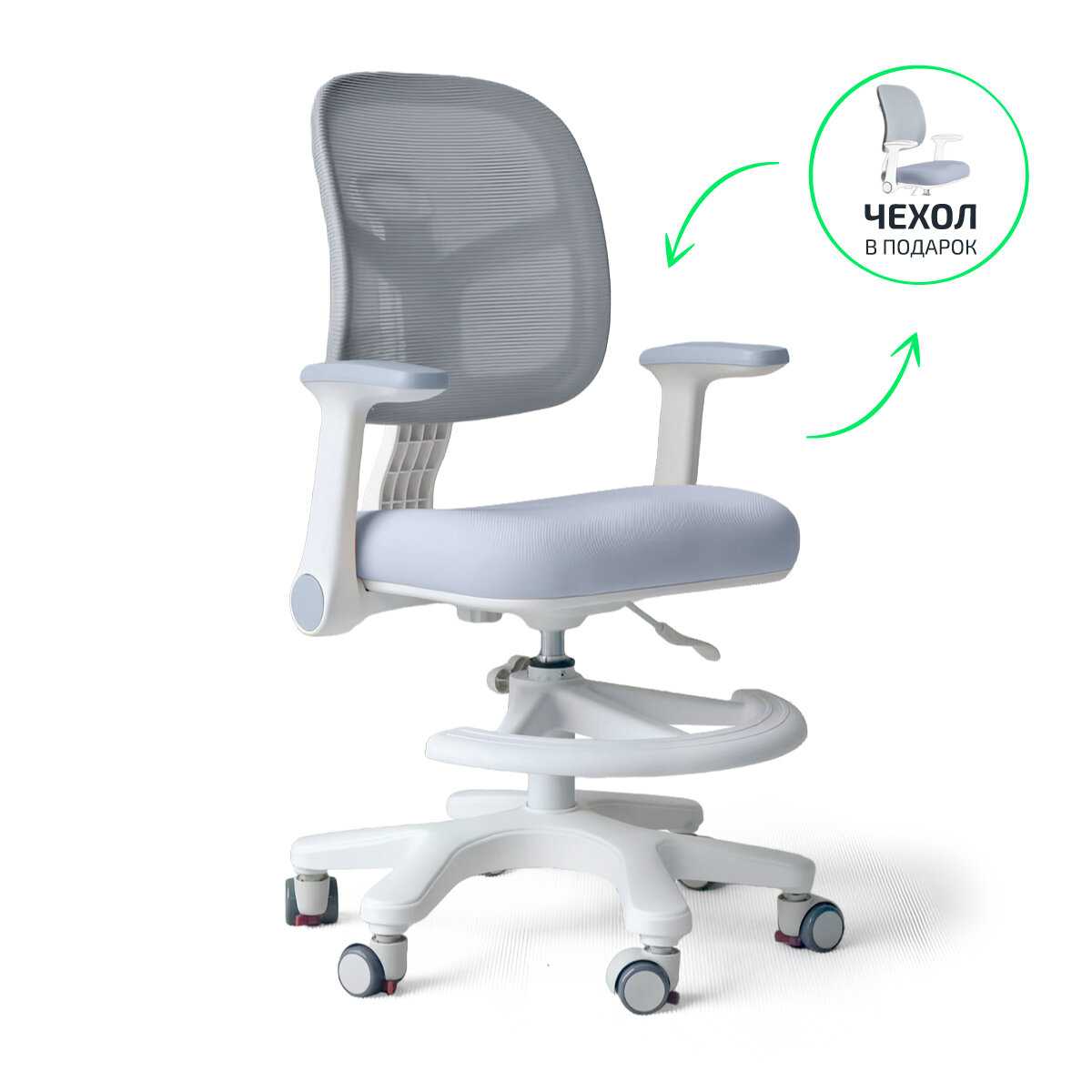 - + Регулируется высота и глубина спинки, чехлы снимаются, есть подставка для ног.