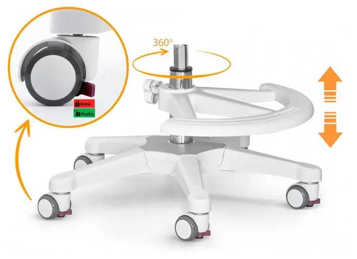 Колеса автоматически блокируются под весом ребенка, предотвращая отвлечение во время учебы, но это ограничивает возможность подъехать к столу после посадки. Регулировка колес предусматривает три положения, позволяя отключить блокировку полностью для свободного перемещения. В отзывах подчеркивается парадокс: блокировка надежна при сидении, но затрудняет коррекцию позы, а у некоторых моделей механизм срабатывает нестабильно. Для удобства многие пользователи предпочитают отключать функцию, используя ручные настройки. -