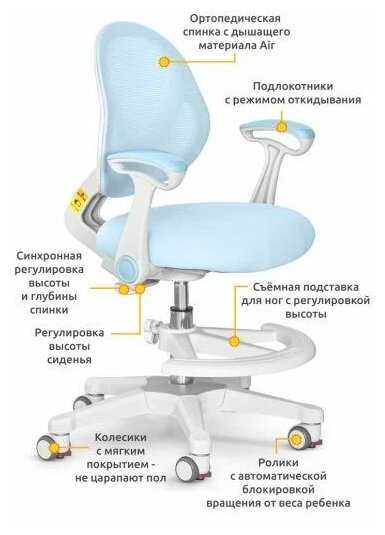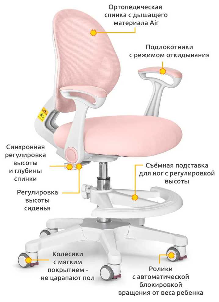 - Высота спинки адаптируется под анатомические особенности, поддерживая осанку школьника.
