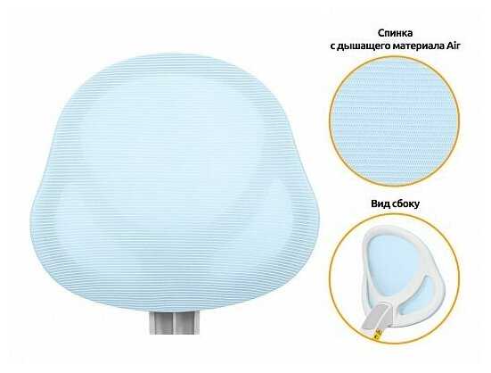 - Сетчатая спинка из плотной ткани обеспечивает вентиляцию и равномерное распределение нагрузки на позвоночник.