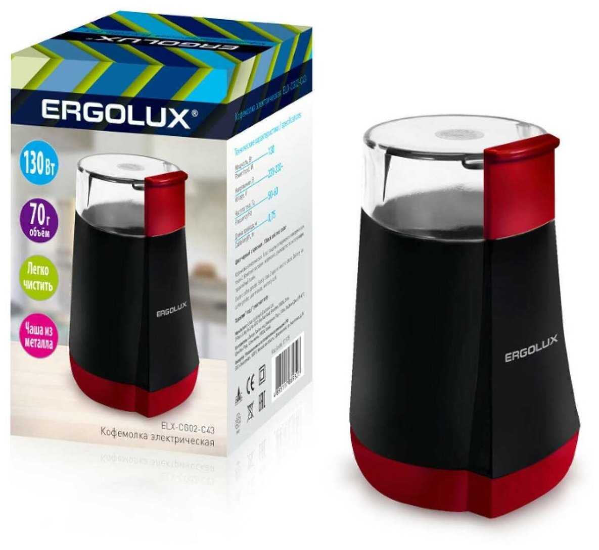 Кофемолка Ergolux ELX-CG02-С43 Black — классная штука для тех, кто любит свежесмолотый кофе. Она стильно выглядит и удобно работает. Зёрна мелет отлично, а сама кофемолка привлекает внимание. Можно не только кофе молоть, но и специи с семенами. Она небольшая, так что поставить можно куда угодно. Всем, кто ценит настоящий ароматный кофе, советую взять эту кофемолку