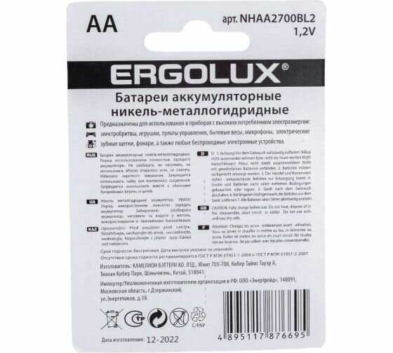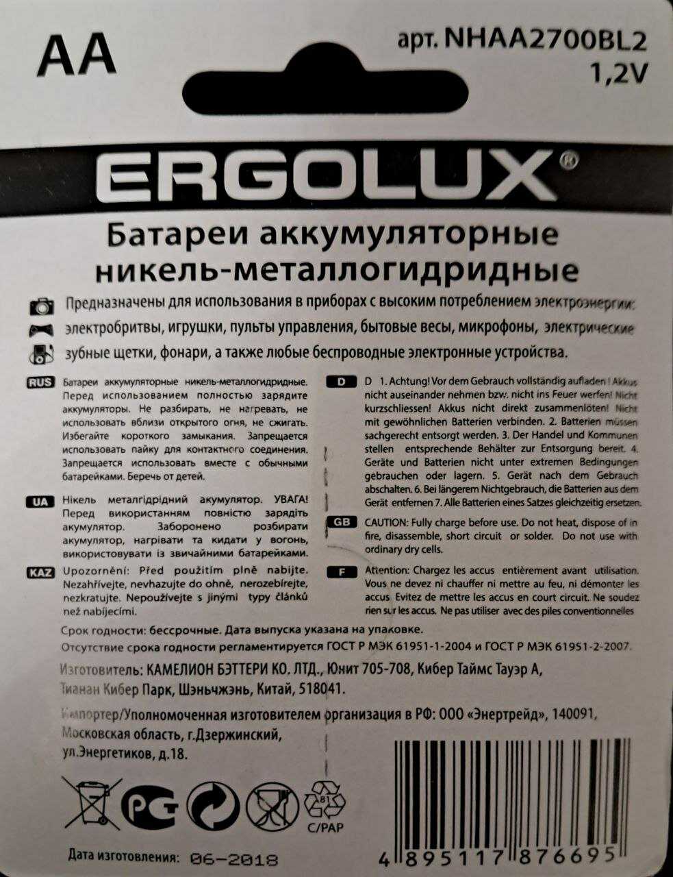 Лучшие цены сегодня на Ergolux Rechargeable batteries AA 2700