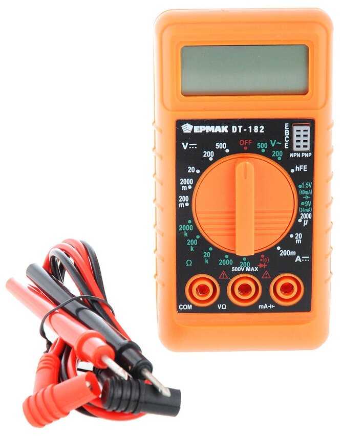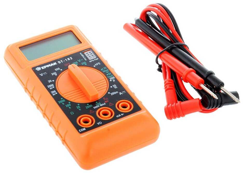 | Функции : | выявление повреждения проводки и соединения, измерение емкости конденсаторов, измерение переменного напряжения, измерение постоянного напряжения, измерение работоспособности диодов и транзисторов, измерение силы переменного тока, измерение силы постоянного тока, измерение сопротивления, проверка батареек под нагрузкой |