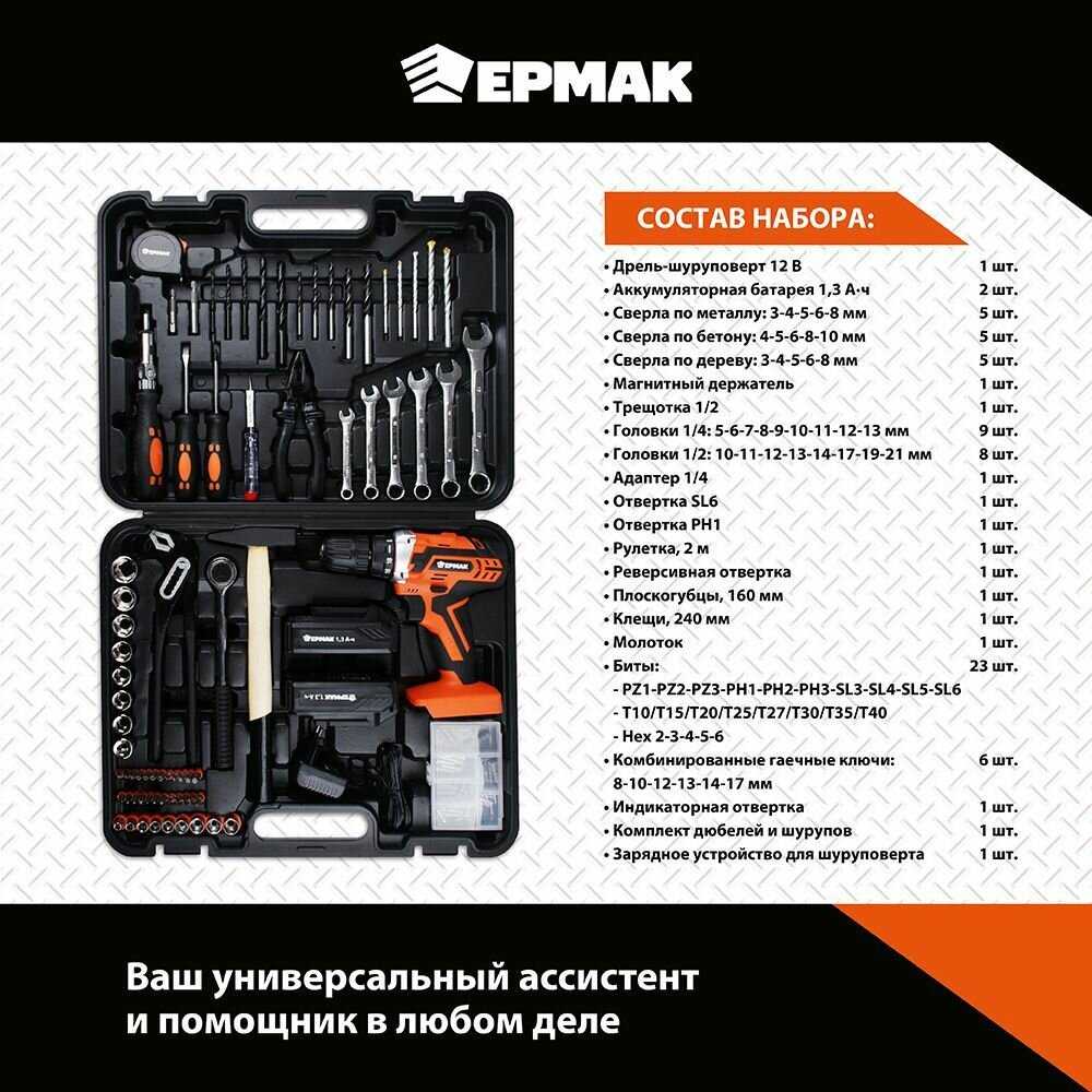 Лучшие цены сегодня на ЕРМАК Набор инструментов с шуруповертом