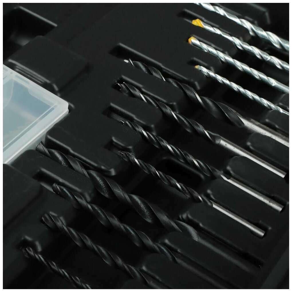 Аксессуары в комплекте : | держатель для бит, дюбели, изолента, нож, отвертка индикаторная, рулетка, удлинитель для бит |