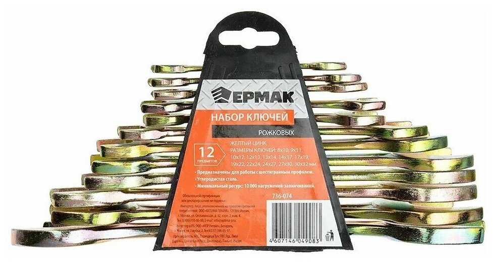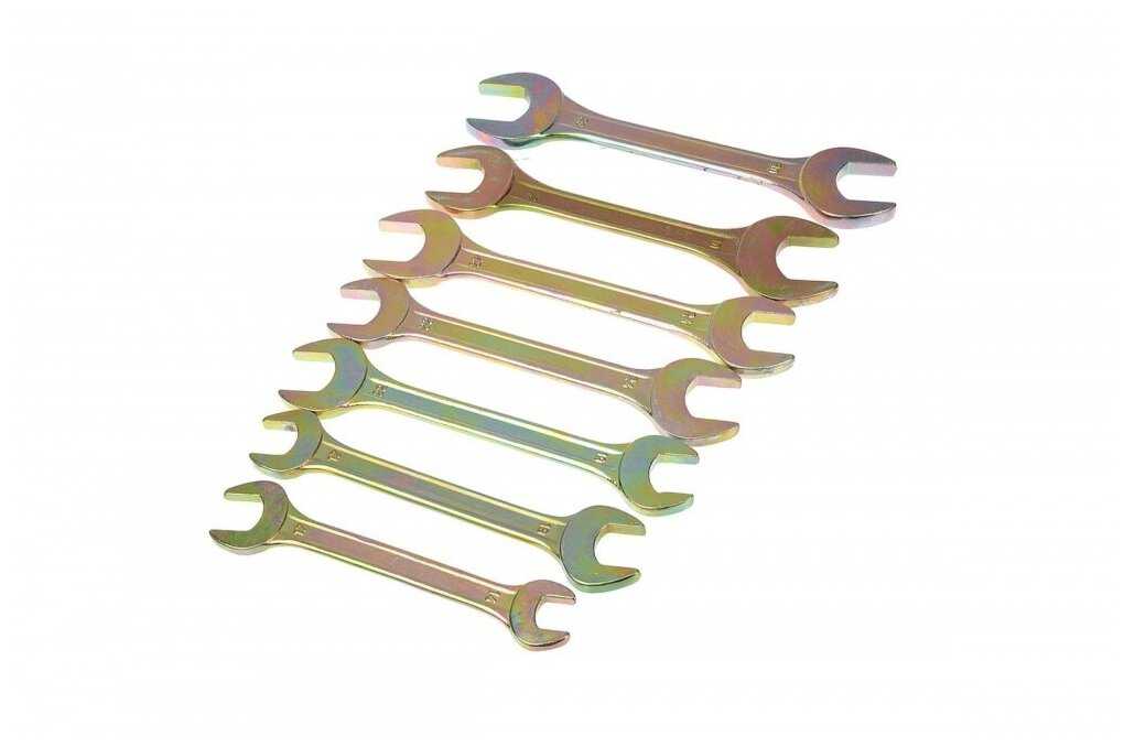 - + Цена. В наборе 12 двусторонних рожковых ключей с размерами от 8 до 32 мм. Прочные. Присутствуют все ходовые размеры. Почти всех ключей по два.