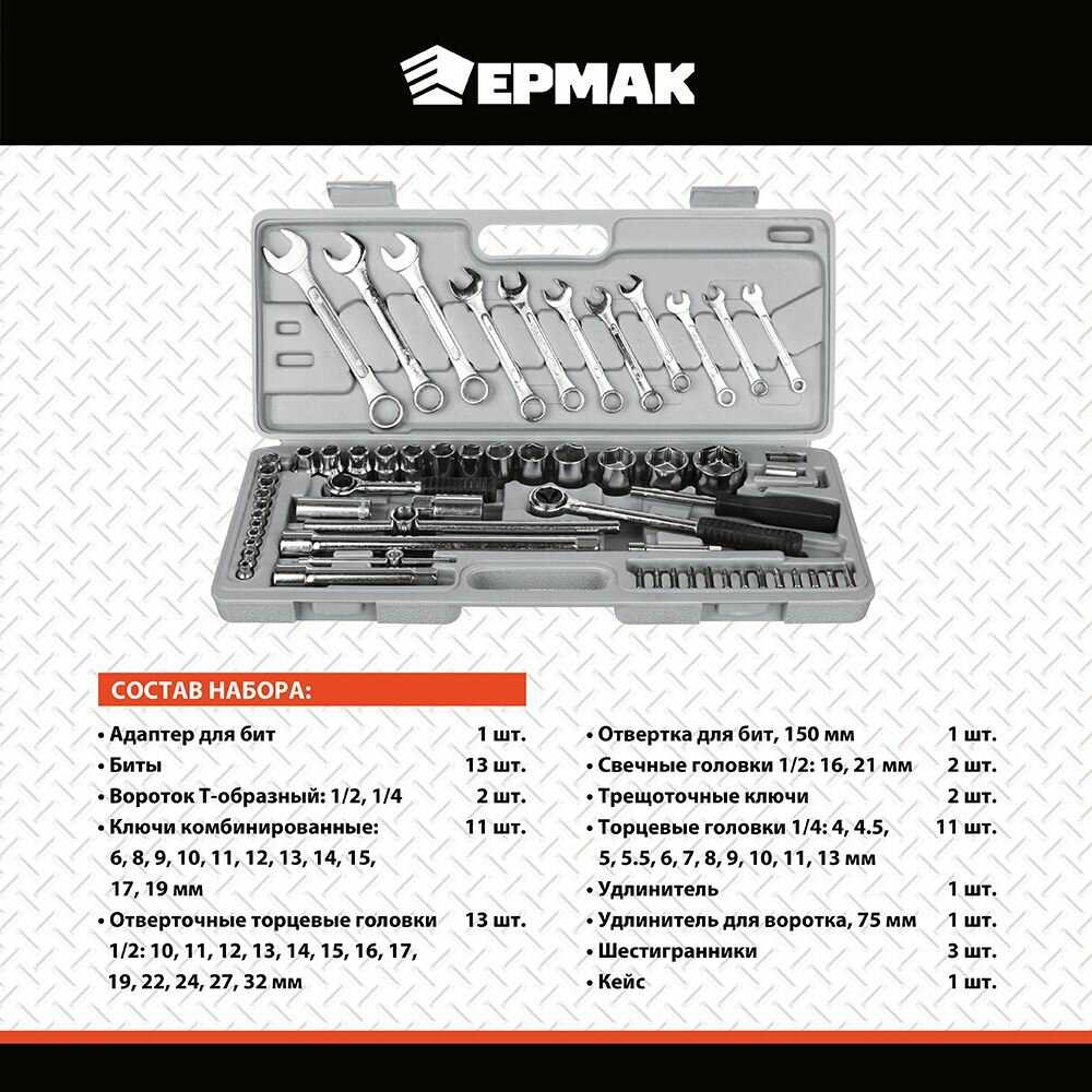8 отзывов пользователей o ЕРМАК Набор проф. инструмента (63 пр)