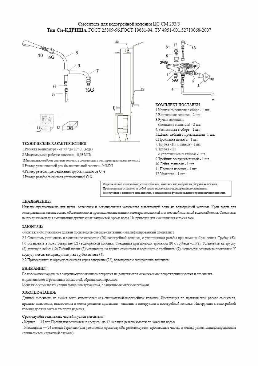 Дополнительная информация : | Смеситель предназначен только для установки на водогрейные колонки Титан (Ермак) |