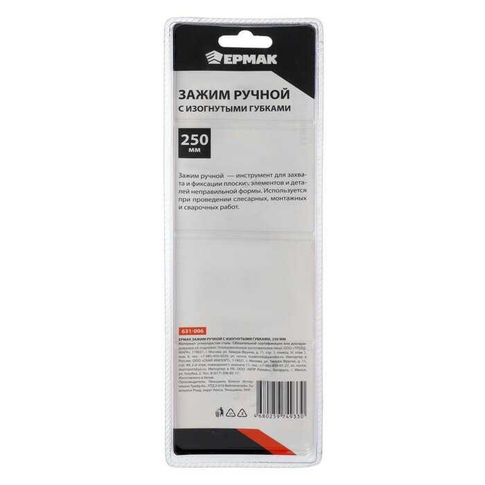 Характеристи ЕРМАК Зажим ручной с изогнутыми губками 250 мм