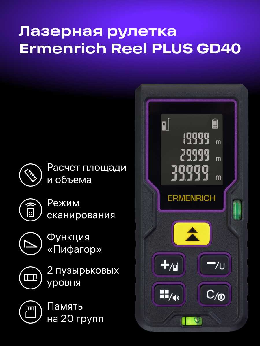 | Функции и особенности : | USB-порт, автоматическое отключение, встроенная память, для охоты, звуковая индикация, подсветка дисплея, функция Пифагора, функция непрерывного измерения, функция расчета объема, функция расчета площади, функция расчета углов, функция сложения/вычитания, цветной дисплей |