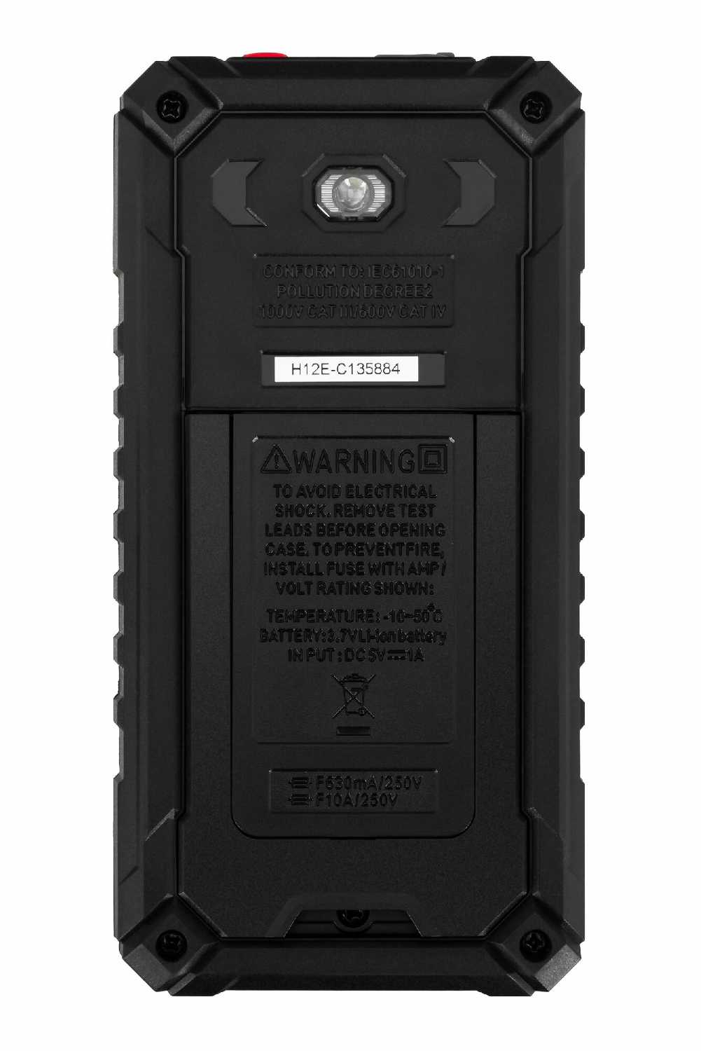 | Дополнительная информация : | Основные функции: вольтметр амперметр омметр, Пределы измерения постоянного напряжения: 200 мВ/2 В/20 В/200 В/600 В: погрешность ±(10%+5), Пределы измерения переменного напряжения: 2/20/200/600 В: погрешность ±(10%+5), Пределы измерения постоянного тока: 20 мА/200 мА/10 А: погрешность ±(15%+5), Пределы измерения сопротивления: 200 Ом/2 кОм/20 кОм/200 кОм/2 МОм/20 МОм: погрешность ±(12%+5), Тест диодов, Истинное среднеквадратичное значение (True RMS), Функция удержания показаний (Hold), Категория перенапряжения: кат. III 600 В, Дисплей: LCD монохромный, Количество отсчетов: 2000, Подсветка дисплея, Стандарты безопасности: EN61010-1-2-030, EN61010-2-033, EN61326-1, Функция проверки целостности (прозвонки) кабеля, Источник питания: 2 батарейки типа AAА (нет в комплекте), Индикатор низкого заряда батареи, Автоотключение |