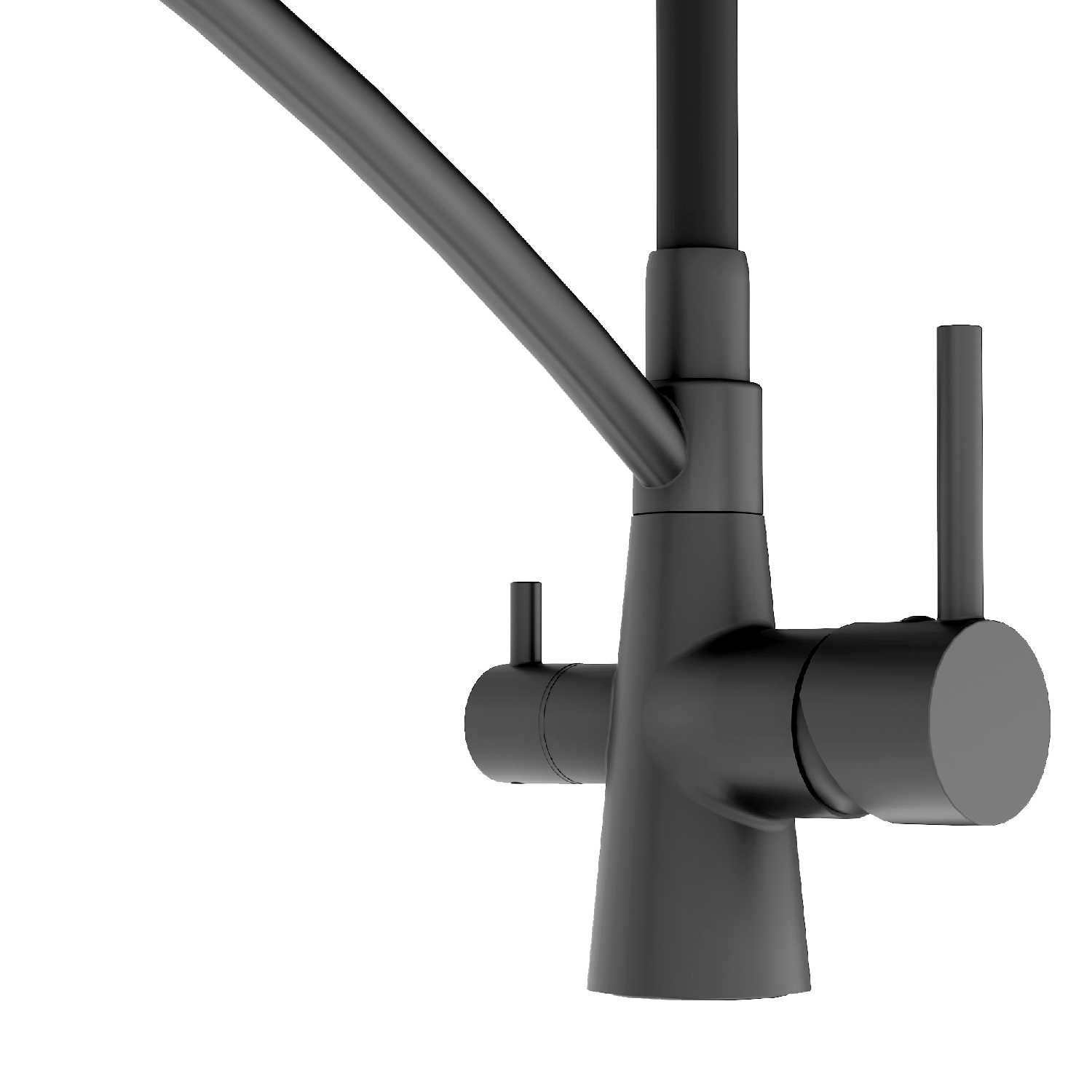 - Двухрежимная конструкция с отдельным рычагом для питьевой воды исключает необходимость сверления дополнительных отверстий в мойке.