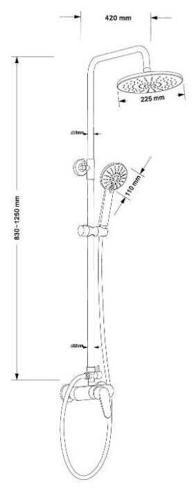 | Высота стойки для душа : | 1250 мм |