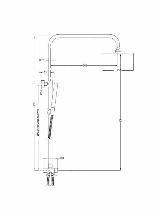 | Дополнительная информация : | высота стойки для душа: 950 мм, длина верхнего душа: 250 мм, ширина верхнего душа: 250 мм |