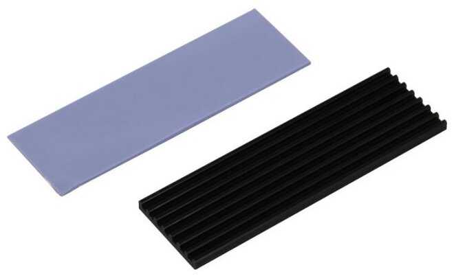- Алюминиевая пластина полностью покрывает чипы SSD, равномерно распределяя тепло.