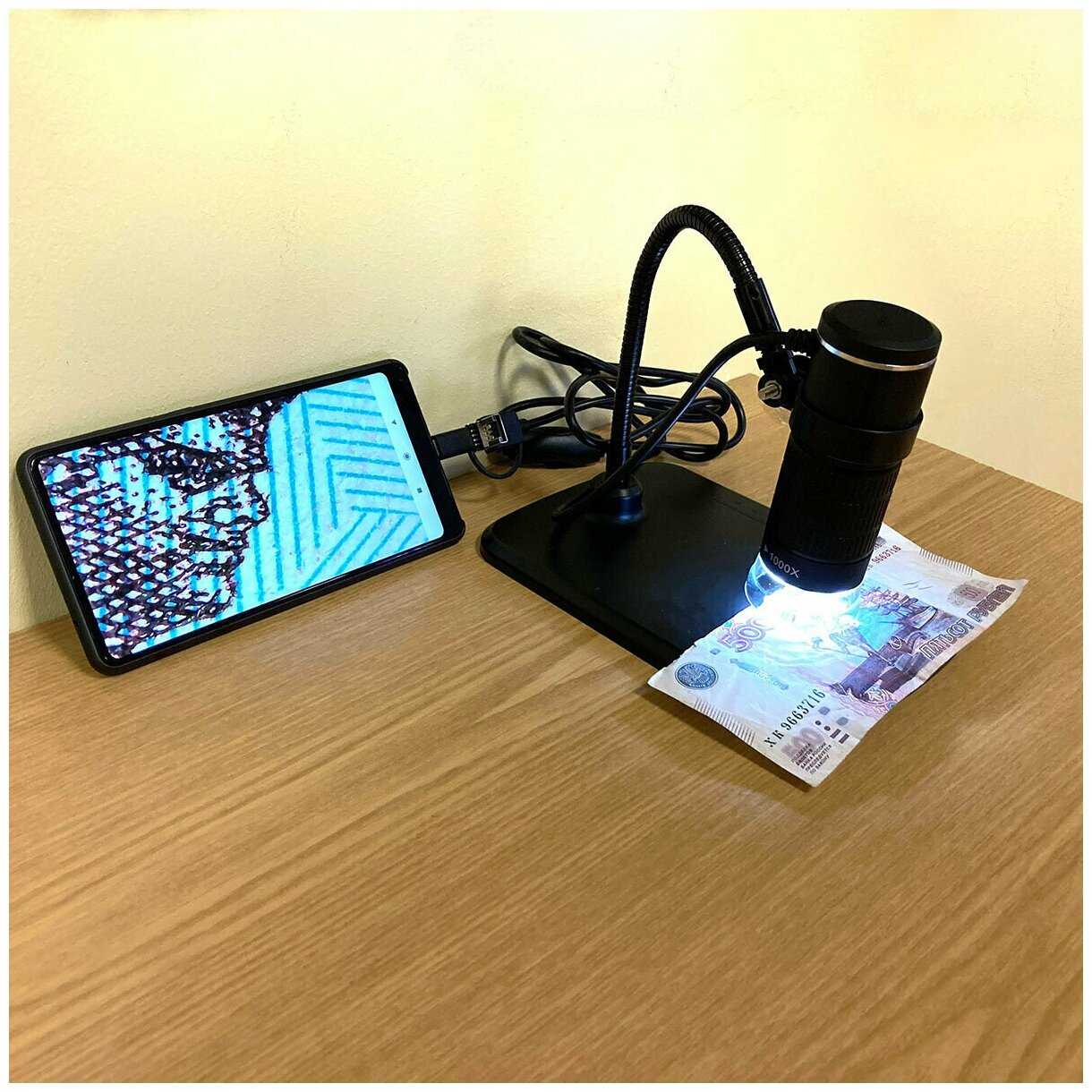 - + хороший микроскоп, сильно увеличивает, но не 1000, есть программное обеспечение, можно подключить к телефону- два разъема, и к ПК.