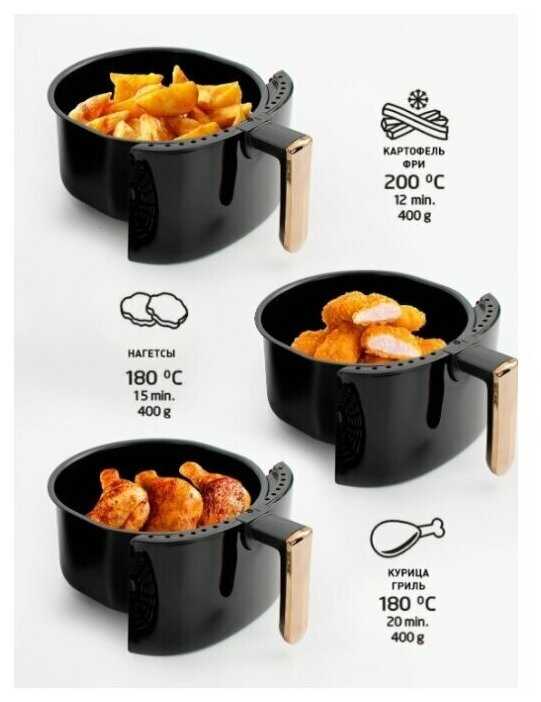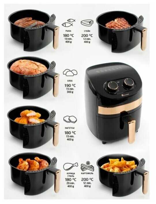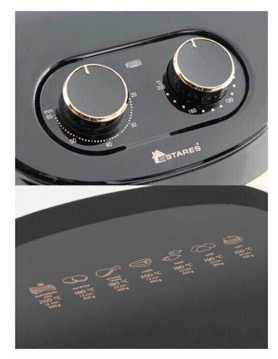 40 отзывов пользователей o Estares Аэрогриль EASYCOOK 1000W-220V-3.5L-280x280x335-BLACK/GOLD, ESTARES