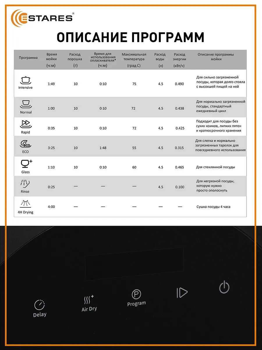 | Программы : | автоматическая, быстрая, интенсивная, стандартная, экономичная |