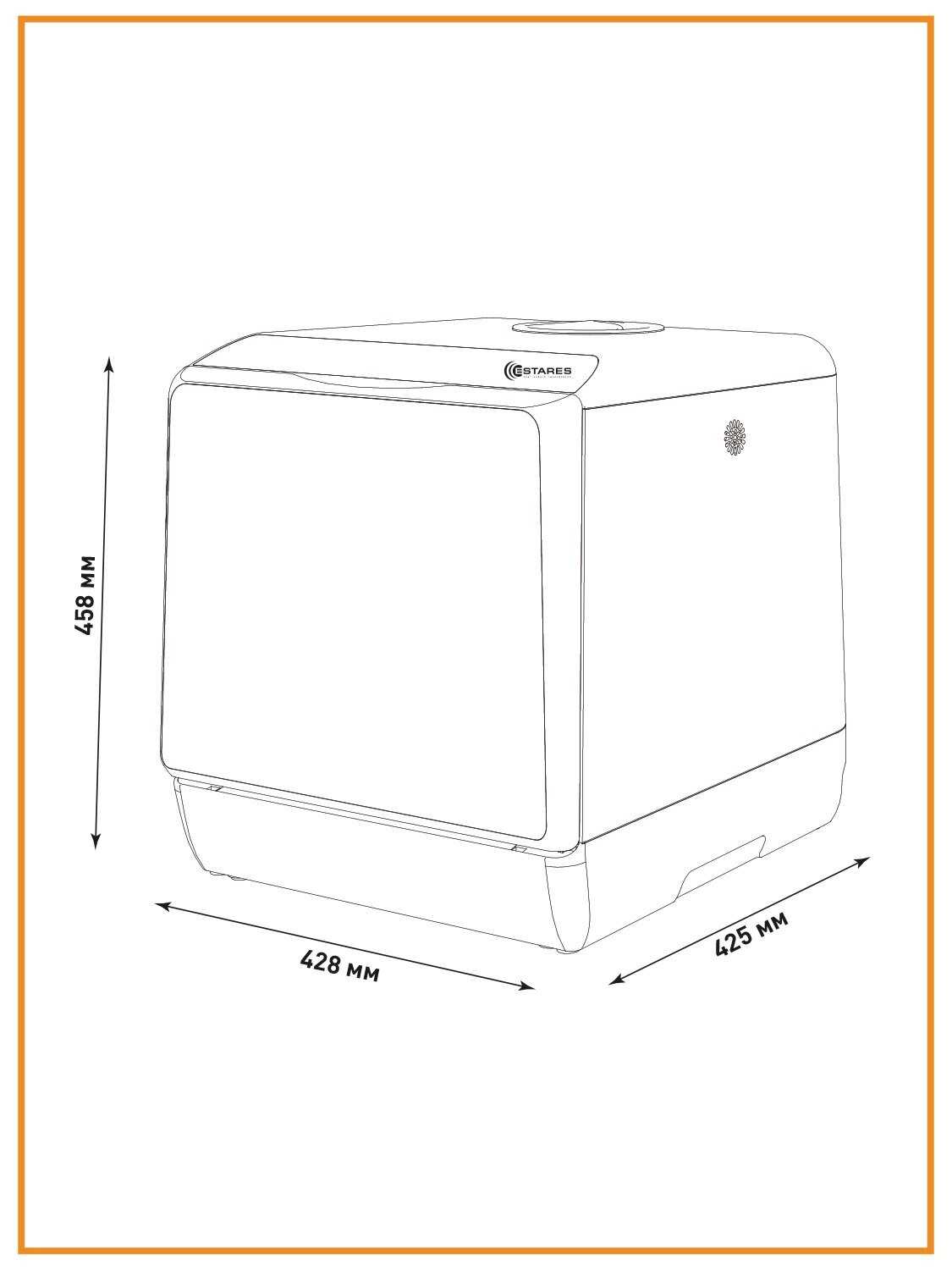 Вместимость и компактность: Несмотря на компактные габариты, значительно меньшие чем у стандартной микроволновки, машина демонстрирует впечатляющую вместительность. Фактическая вместимость соответствует заявленным 4 комплектам посуды, а при правильном размещении пользователи могут мыть дополнительную крупногабаритную посуду. В машину помещаются сковороды диаметром 28 см с крышкой, кастрюли объемом до 4 литров, ковши и другая кухонная утварь. Ключевым фактором является умение грамотно распределять посуду внутри камеры - при правильной укладке вмещается значительно больше предметов без ущерба для качества мойки. Компактные размеры позволяют легко размещать машину в ограниченном пространстве кухни, в том числе рядом с холодильником, что упрощает процесс подключения и эксплуатации.