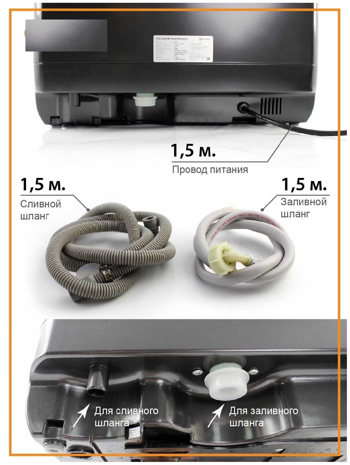 Автономность работы и гибкость подключения: Одним из ключевых преимуществ модели является возможность работы без постоянного подключения к водопроводу, что особенно ценно для дачного использования или сельской местности. Машина предусматривает залив воды через верхнюю панель с помощью специального кувшина из комплекта, хотя некоторые пользователи отмечают необходимость использования дополнительной воронки с гибким шлангом для удобства. Объем водяного бака составляет 5 литров на цикл мойки, что считается экономичным показателем. Слив осуществляется через шланг, который можно направлять непосредственно в раковину, что исключает необходимость сложного подключения к канализации. Эта особенность делает модель идеальной для использования в условиях отсутствия централизованного водоснабжения.