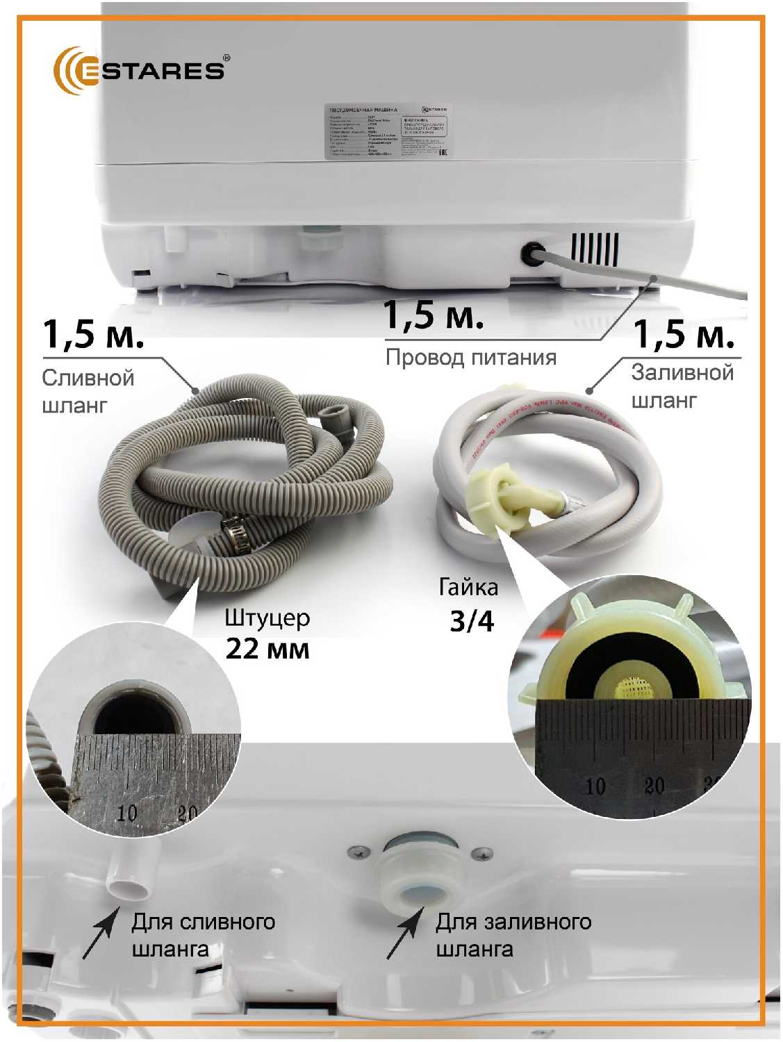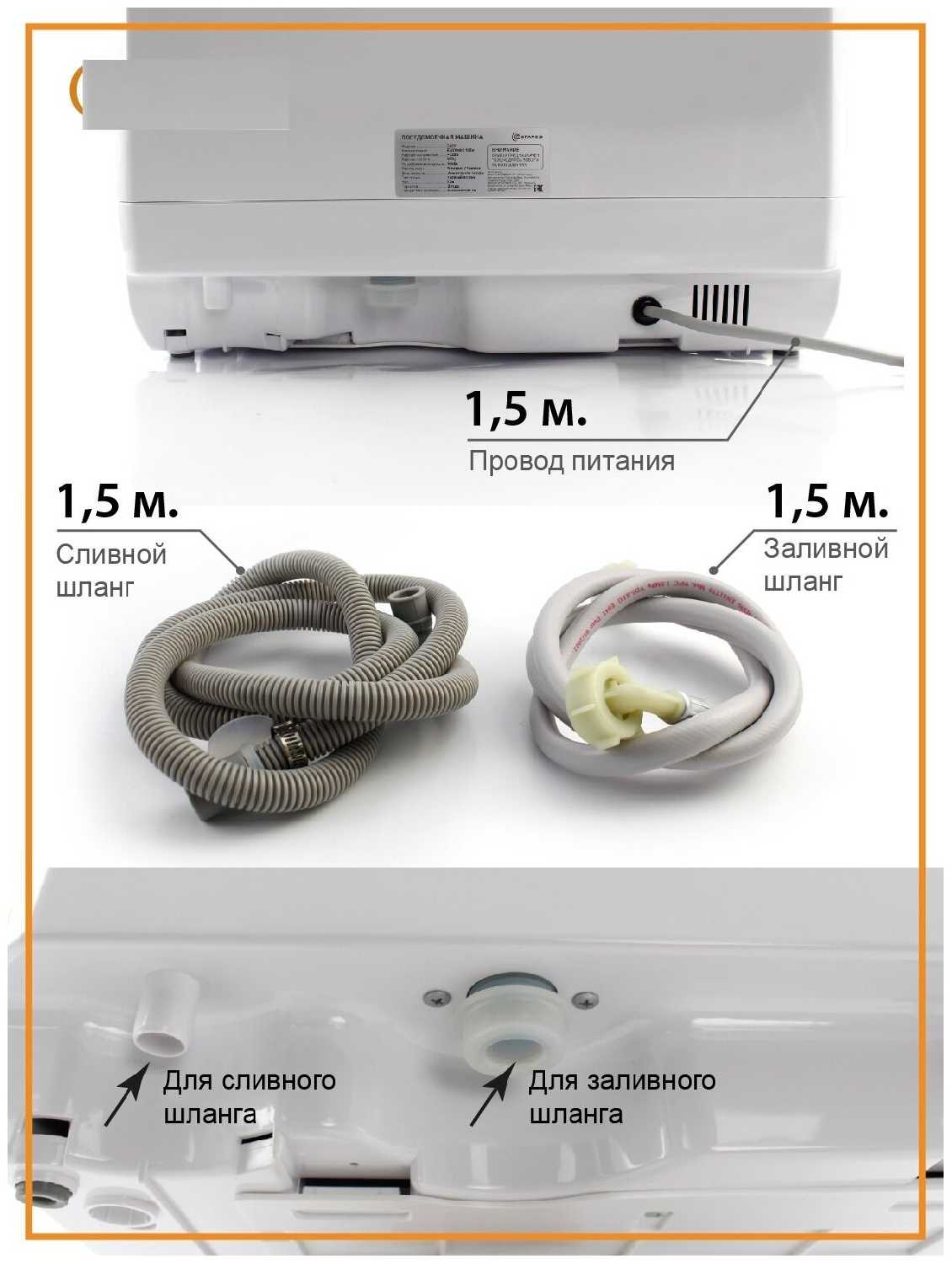 Одним из ключевых преимуществ модели является возможность работы без постоянного подключения к водопроводу, что особенно ценно для дачного использования или сельской местности. Машина предусматривает залив воды через верхнюю панель с помощью специального кувшина из комплекта, хотя некоторые пользователи отмечают необходимость использования дополнительной воронки с гибким шлангом для удобства. Объем водяного бака составляет 5 литров на цикл мойки, что считается экономичным показателем. Слив осуществляется через шланг, который можно направлять непосредственно в раковину, что исключает необходимость сложного подключения к канализации. Эта особенность делает модель идеальной для использования в условиях отсутствия централизованного водоснабжения.