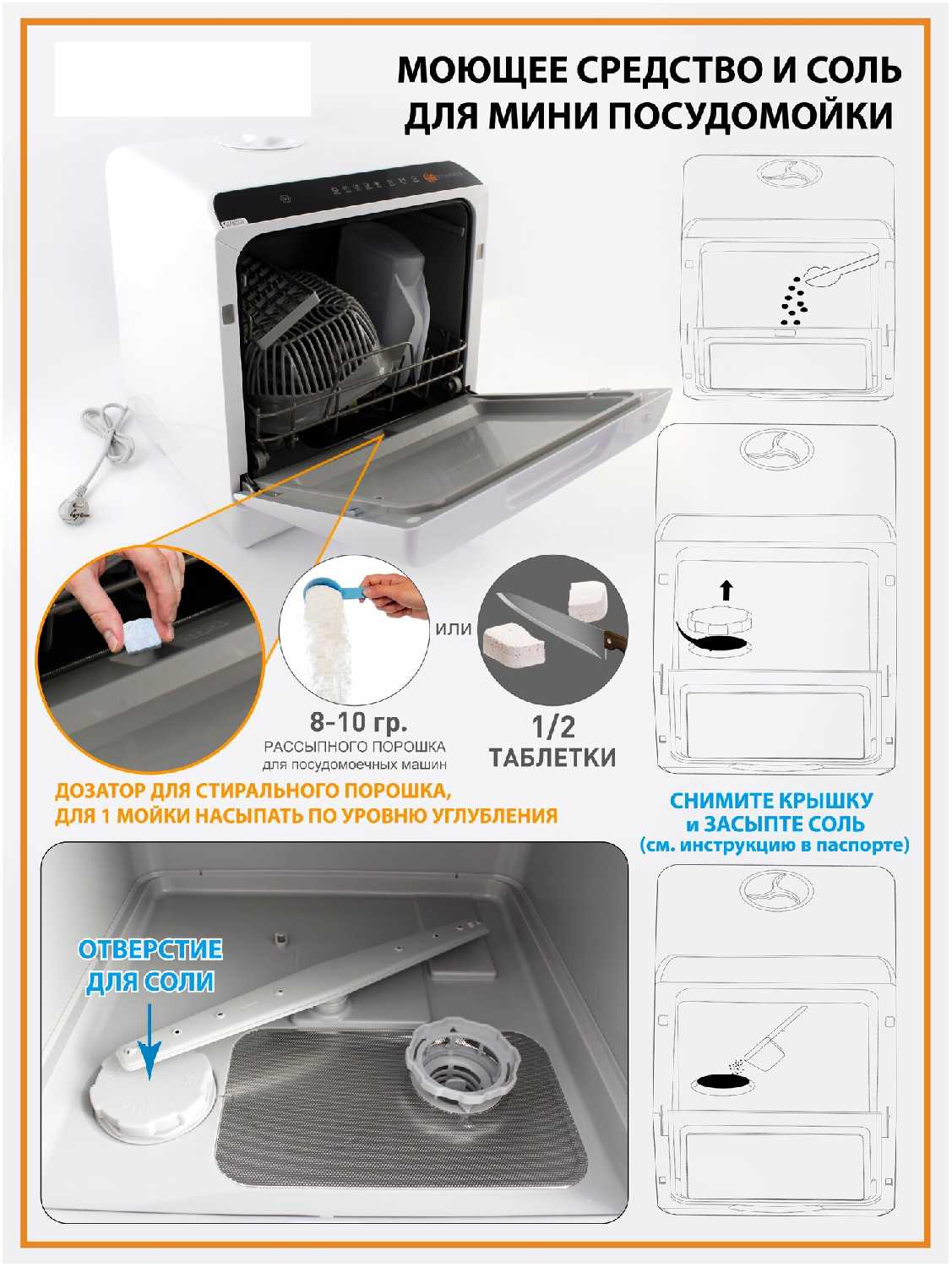 Пользователи успешно применяют как универсальные таблетки "3-в-1" (часто разрезая их пополам для экономии), так и специализированные средства для портативных посудомоек, например, Clean&Fresh. Гелевые средства также показывают хороший результат. Главное — использовать качественную химию и соблюдать дозировку, чтобы избежать белого налета или разводов. -