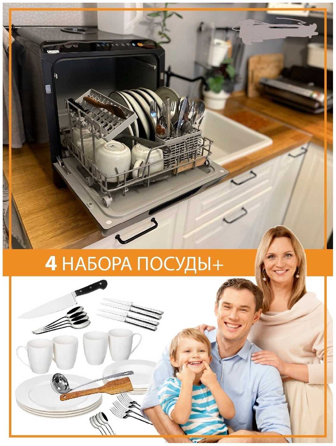 По отзывам пользователей, машина демонстрирует стабильную работу в течение продолжительного времени - многие отмечают беспроблемную эксплуатацию в течение 4-6 месяцев и более. Качество сборки и материалов оценивается как высокое, хотя есть единичные сообщения о возможном попадании воды на стык корпуса и панели управления. В таких случаях наблюдались временные сбои в работе, которые устранялись простым отключением от питания. Большинство пользователей выражают уверенность в долговечности аппарата и удовлетворены качеством его работы. Отмечается, что для обеспечения оптимальной работы важно использовать специализированные моющие средства для портативных посудомоечных машин и соблюдать рекомендации по дозировке.