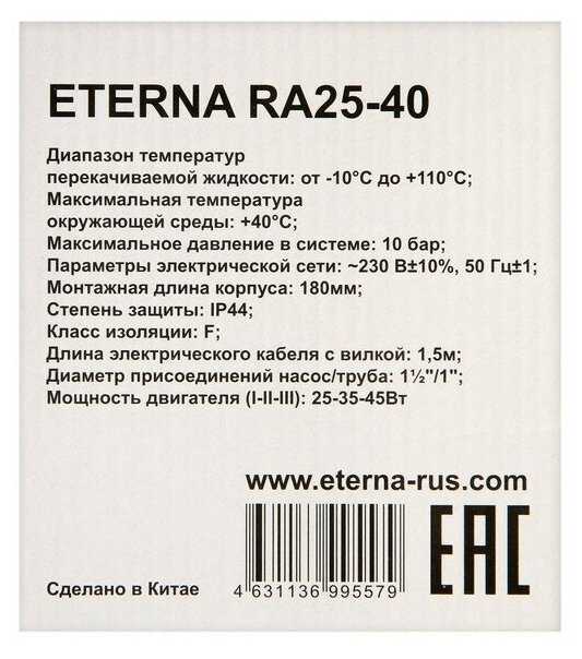 Лучшие цены сегодня на Eterna Engineering RА 25-40 (45 Вт)