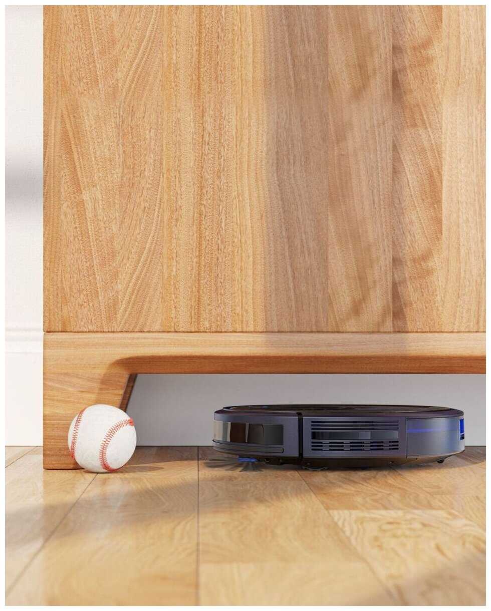 - + Хорошая высота, заезжает под ванну и спокойно выезжает. Тихо работает. Шустро забегает на ковер, без тормозов. Приличный объем контейнера 0,6л. Управляется вручную, с пульта, со смартфона и голосом через яндекс-станцию...