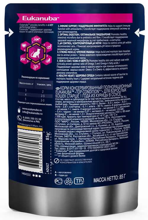 | Дополнительная информация : | Корм готов к употреблению. Проследите, чтобы у вашей кошки всегда была свежая вода. |