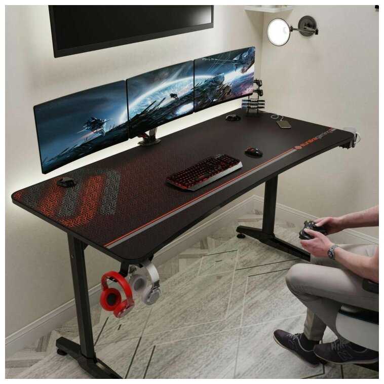 Ширина большая, вмещает два монитора и периферию, но глубины не хватает на 10 см для вытянутых рук или локтей без выреза. Пользователи с симрейсингом хвалят простор для руля. Нет ниши под монитор или полки для принтера. Для роста 183 см места хватает, но привыкание требуется. Сравнивая со старыми столами, прироста вау-эффекта нет. -