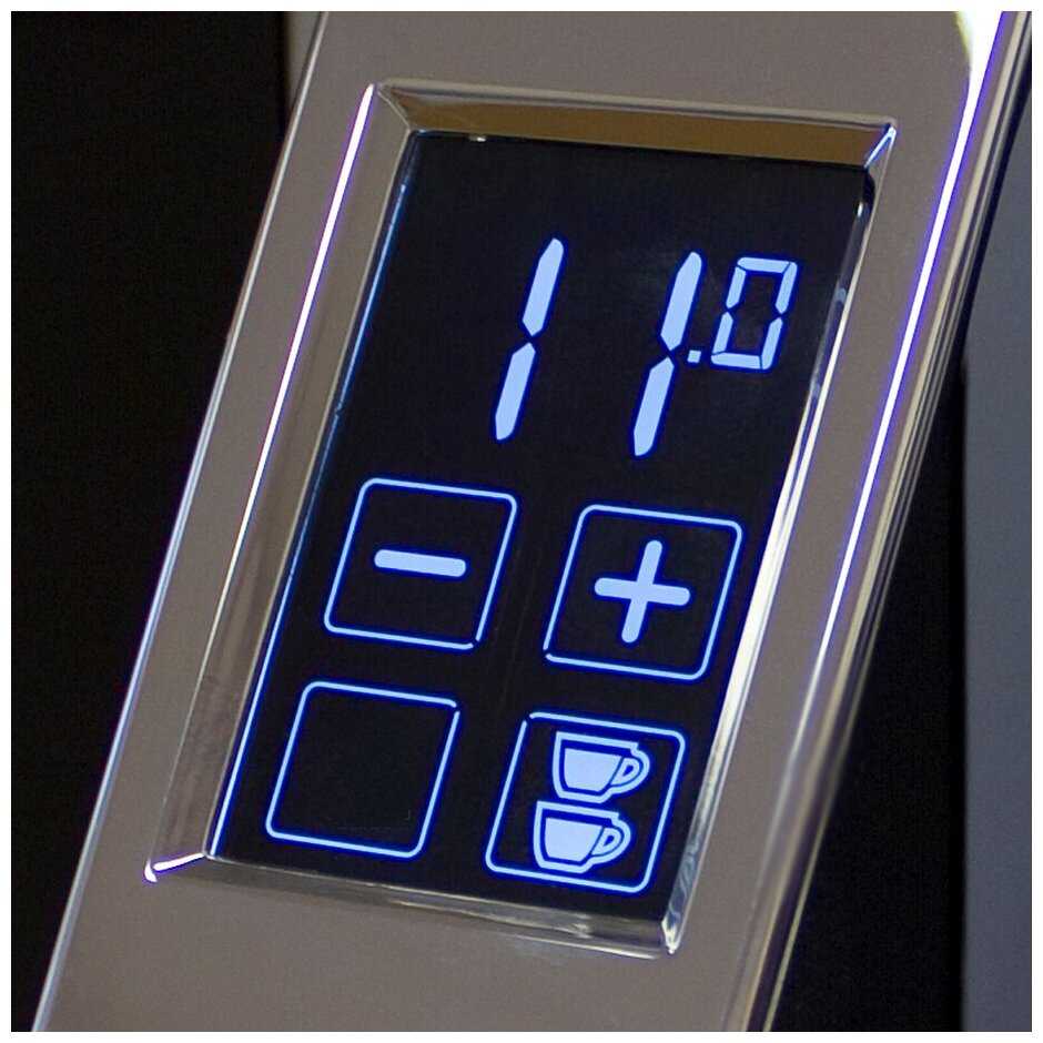 5. Отзывчивый сенсорный экран с настройкой таймера на одну, две порции и включением непрерывного помола.