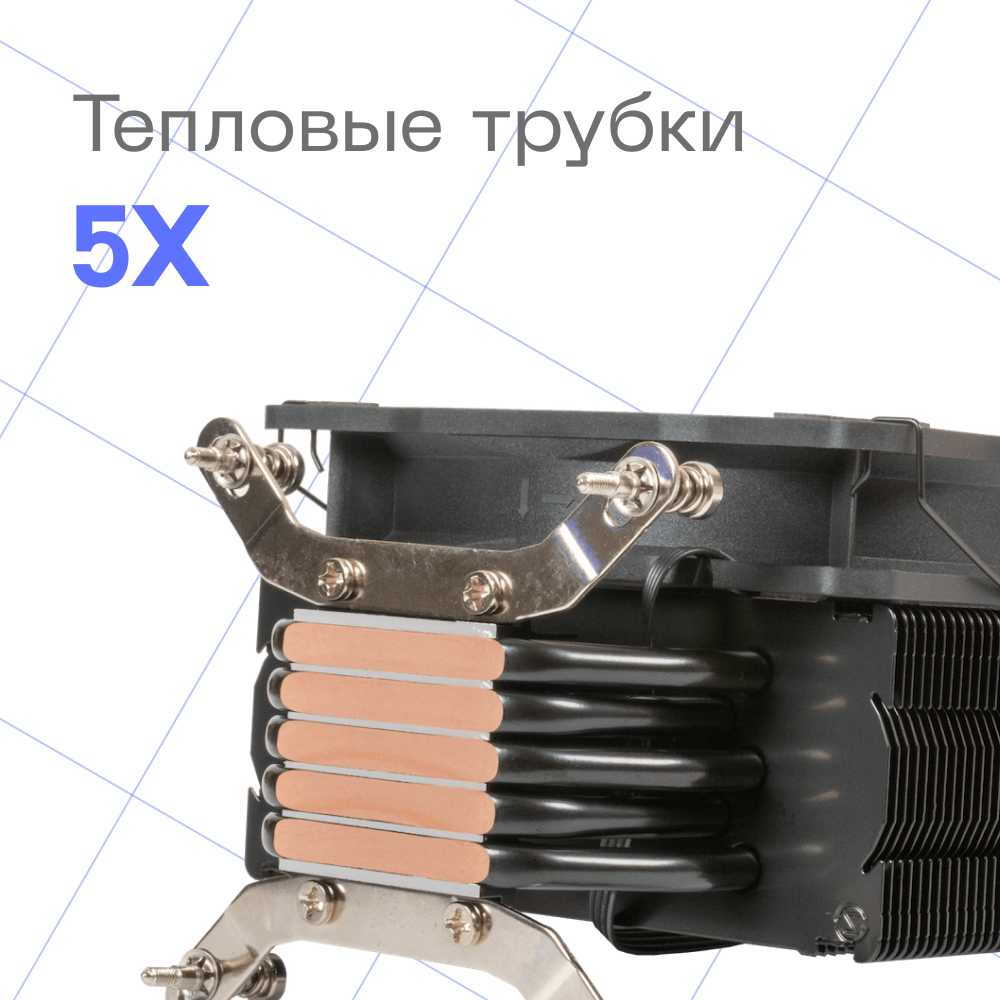 - + + Наличие 6-ти тепловых трубок при сохранении компактных размеров самого кулера;