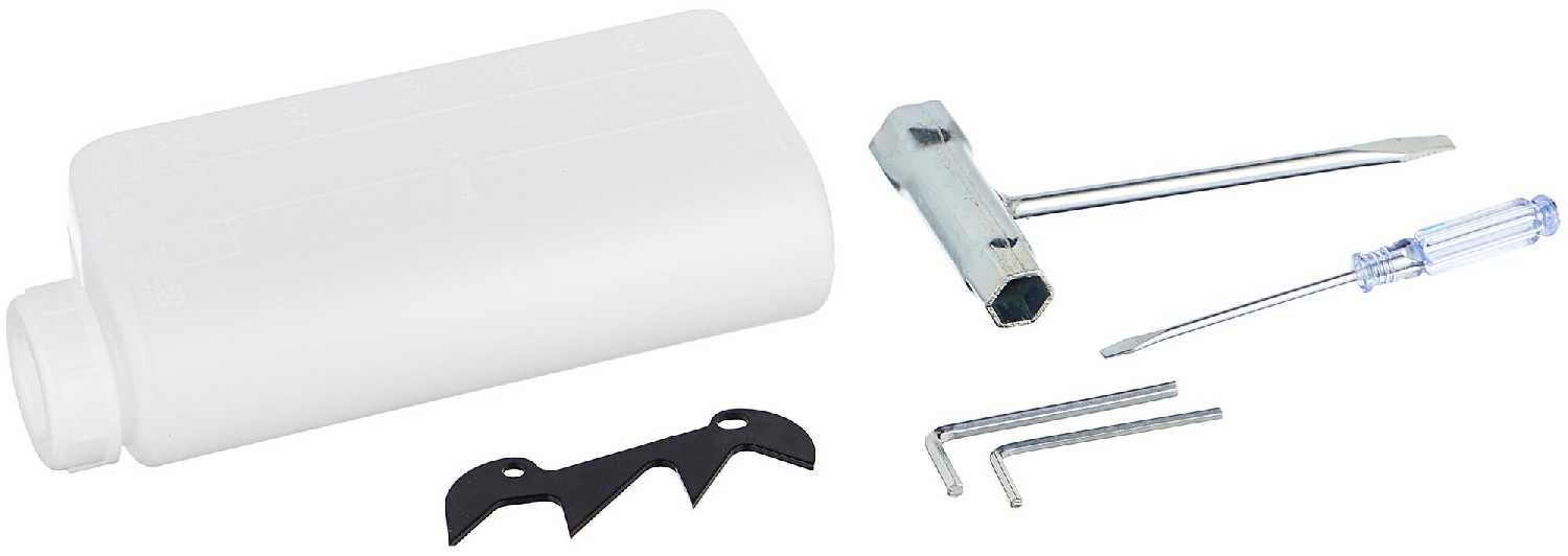 Комплект поставки : | шина, цепь, защитный кожух, емкость для смешивания топливной смеси, монтажный набор |
