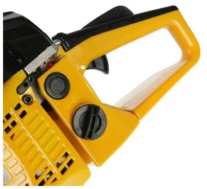 - Алюминиевая ручка возле стартера гнётся при застревании пилы в дереве.