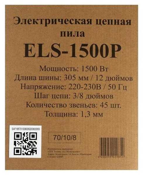 | Комплект поставки : | Электропила, шина, цепь, защитный чехол шины, универсальный ключ, документация |
