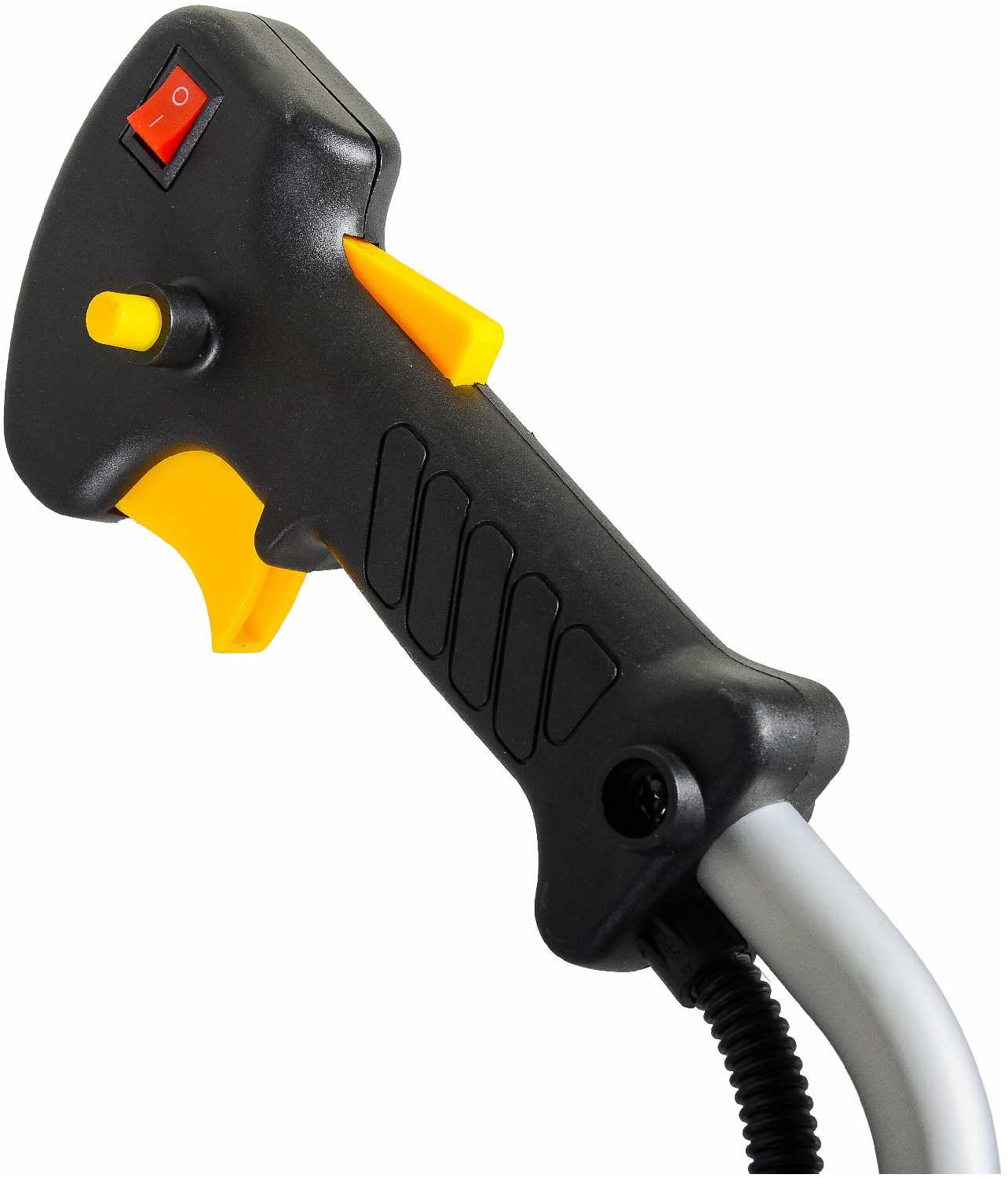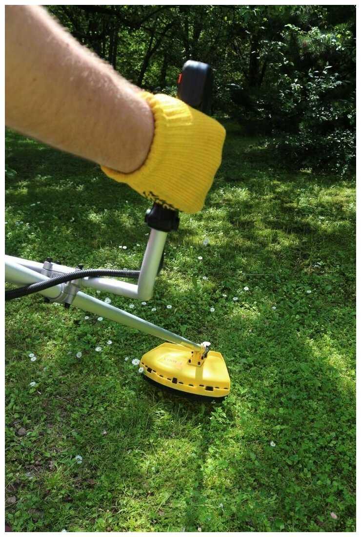 Велосипедная рукоятка с регулировкой высоты — один из ключевых плюсов. Она позволяет адаптировать триммер под рост пользователя и направлять инструмент с минимальными усилиями. В сочетании с наплечным ремнём это улучшает балансировку и снижает нагрузку на спину, хотя базовый ремень некоторым кажется неудобным. -