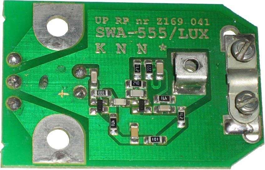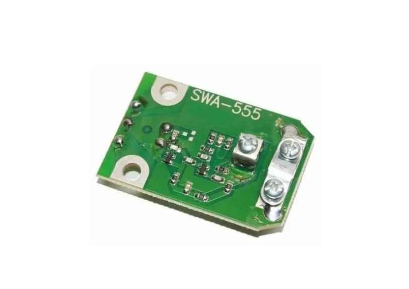 | Дополнительная информация : | Широкополосный антенный усилитель SWA-555 устанавливается в наружных антеннах, решетках (польских антеннах), для усиления ТВ сигнала. В зависимости от расстояния до телецентра, применяются различные модели, имеющие разный коэффициент усиления и позволяющие принимать телепрограммы на расстоянии от 0 до 100 км от телецентра. Широкополосные антенные усилители SWA имеют входное сопротивление, определяемое конструкцией антенны 300 Ом, выходное сопротивление 75 Ом, используют напряжение питания от 9 В до 15 В и предназначены для усиления диапазона частот 49 Мгц – 790 Мгц. Коэффициент усиления антенны с усилителем в дБ: Каналы 1 - 21: 10 - 15, Каналы 21 - 68: 34 - 43 Шумы ДБ: 2, 2. |