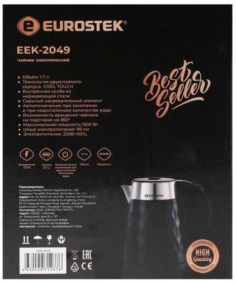 | Безопасность : | блокировка включения без воды, блокировка крышки, отключение при снятии с подставки |