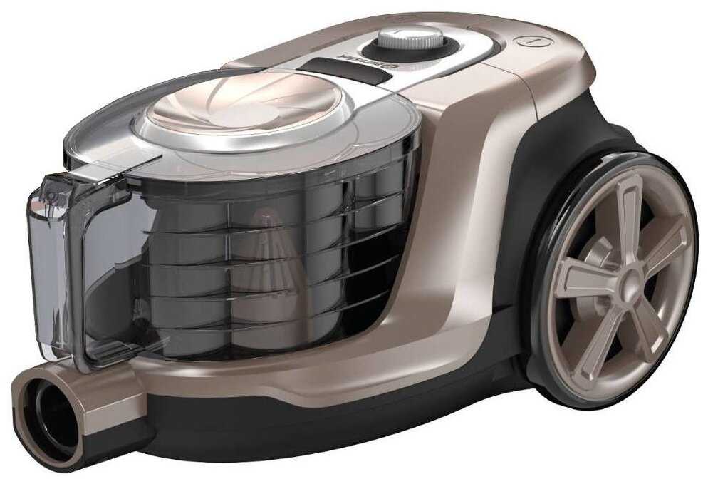 - Пылесос легко перемещается за счёт продуманного расположения колёс и балансировки центра тяжести, что упрощает уборку под мебелью.