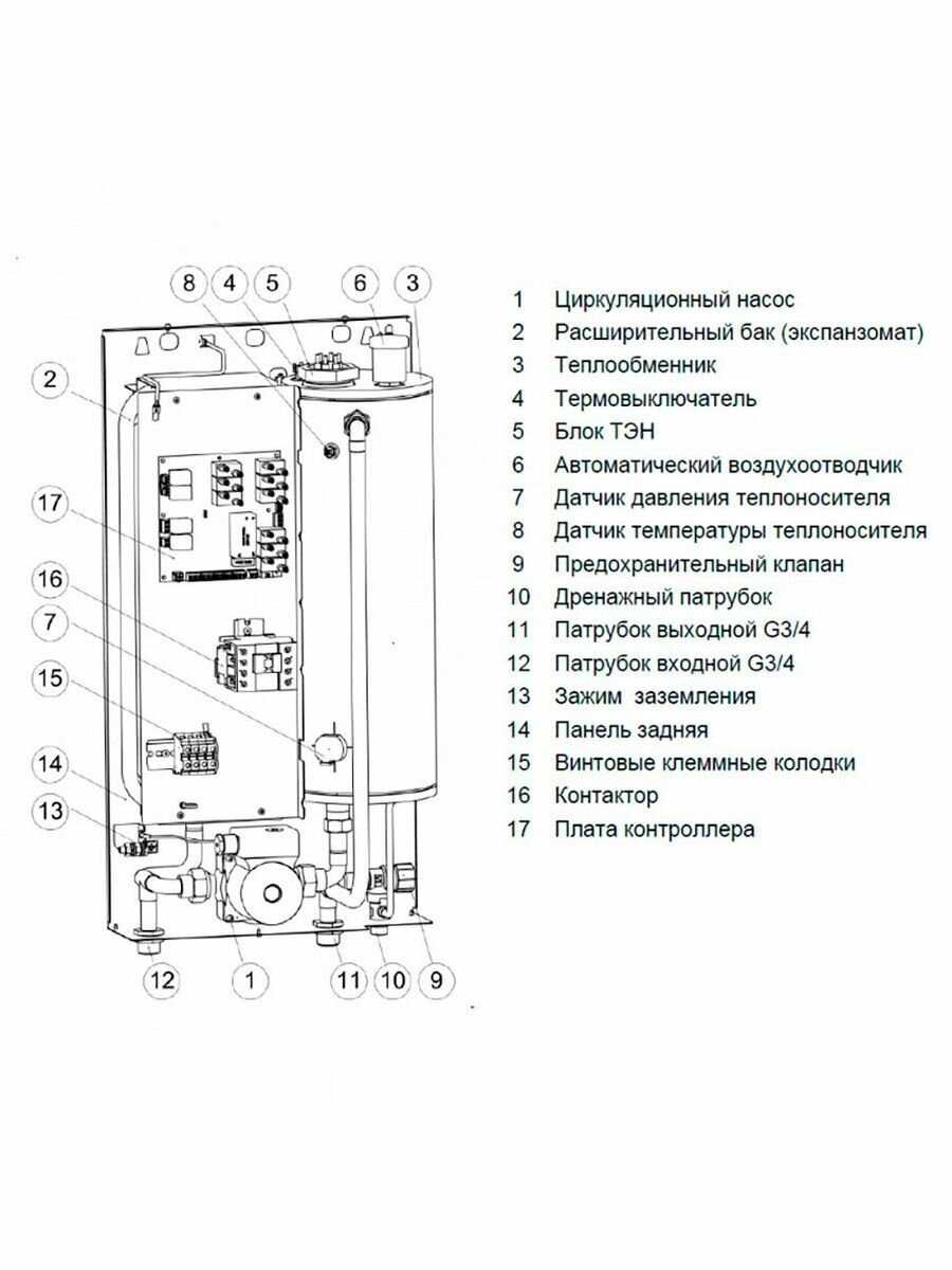 Особенности : | воздухоотводчик, встроенный расширительный бак, встроенный циркуляционный насос, манометр, предохранительный клапан, термометр |