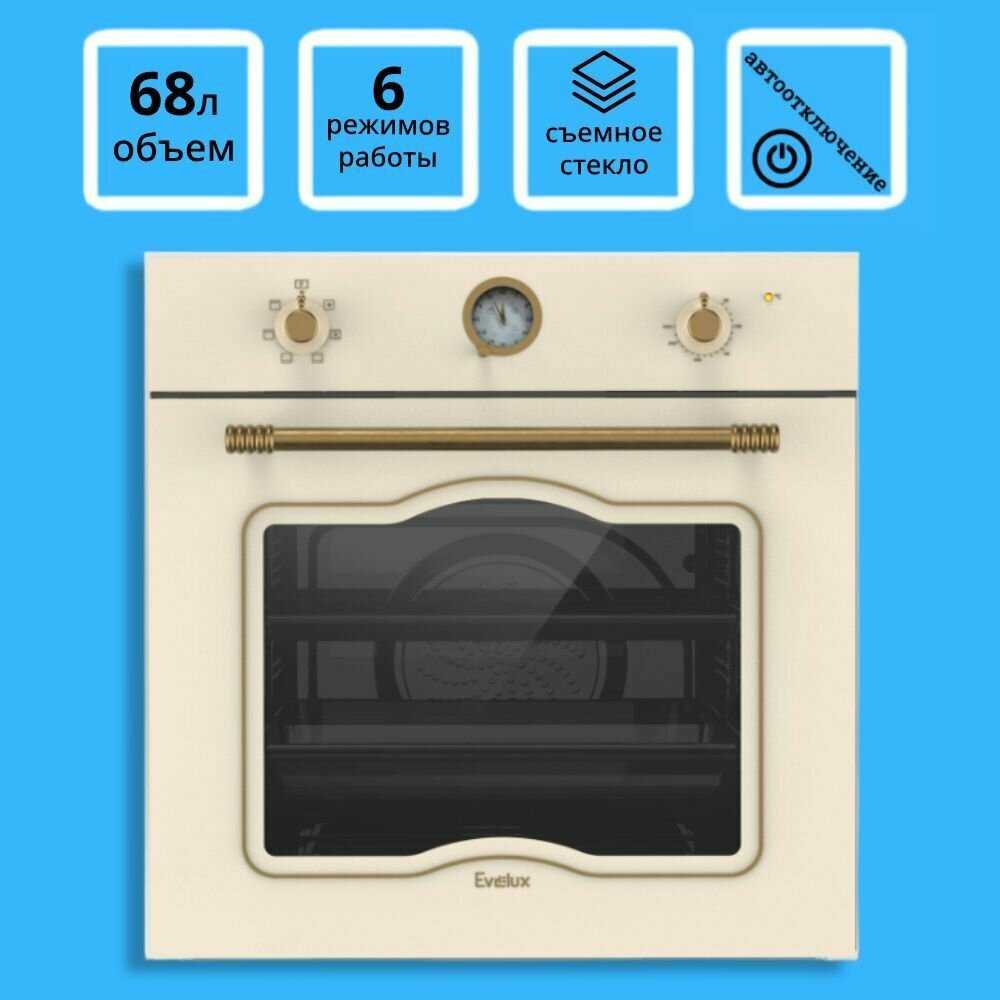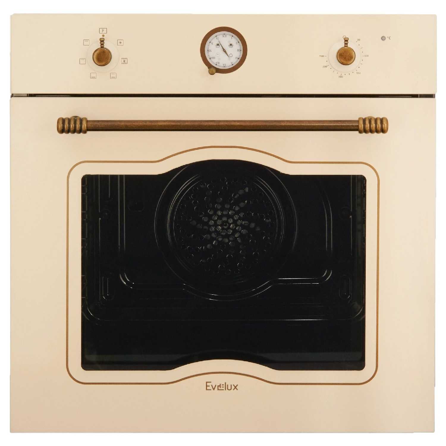Духовой шкаф Evelux неизменно получает высшие оценки за ретро-дизайн с бронзовыми переключателями и бежевым корпусом, который идеально сочетается с классическими кухнями. Пользователи подчеркивают, что техника выглядит как элемент декора, а не просто прибор, особенно отмечая стильные утапливаемые регуляторы, которые не нарушают общую гармонию. Двухслойное термостекло дверцы не только обеспечивает безопасность (исключая ожоги), но и дополняет винтажный облик. Многие покупатели выбирали модель именно из-за уникального оформления, которое сложно найти у конкурентов в аналогичном ценовом сегменте.